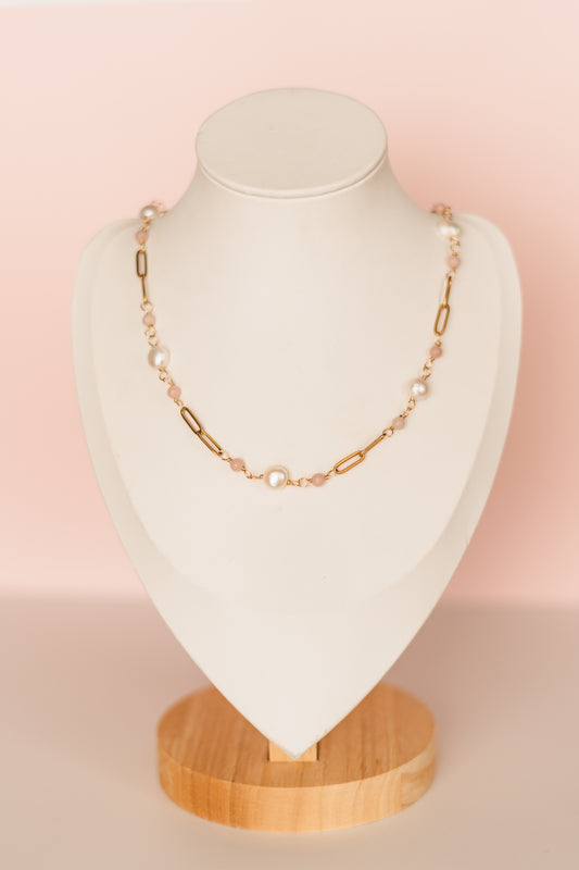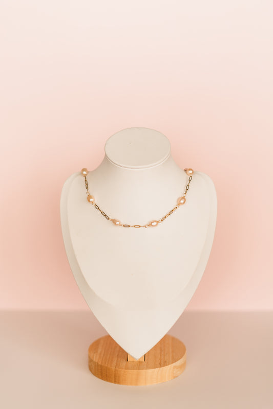 Lexi - Pink Freshwater Pearl Link Necklace - Always Augustine Birthday Collection