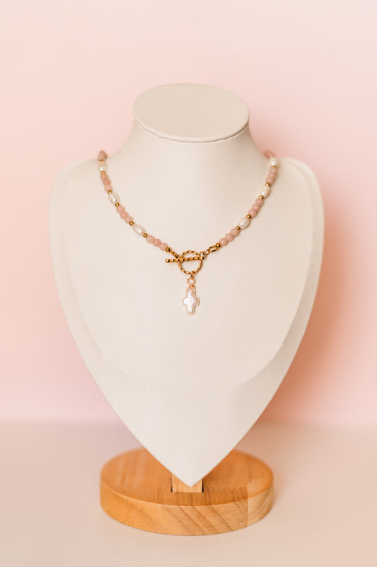 Dorothea | Pink Opal & Pearl Cross Necklace - Create Your Sunshine