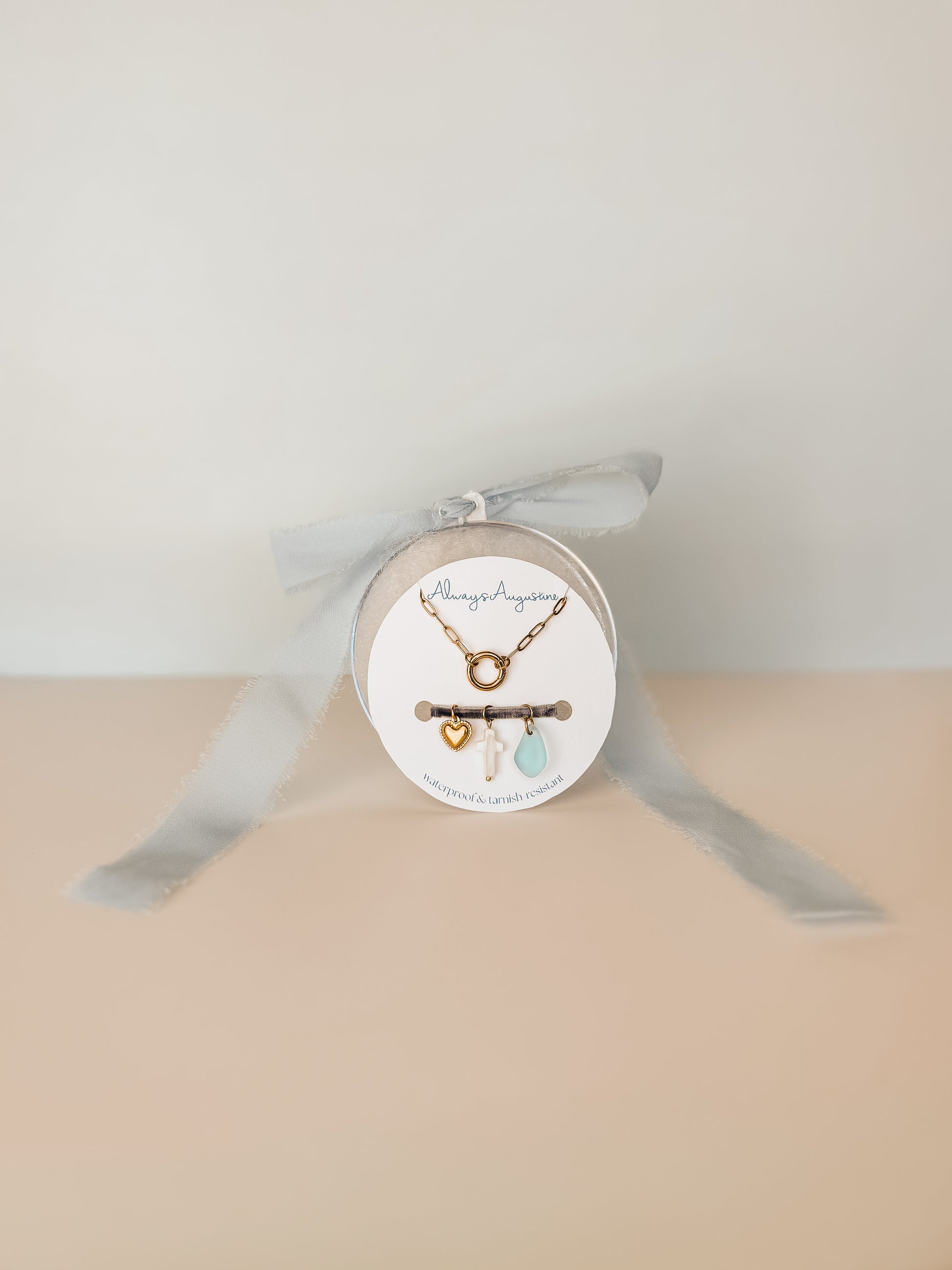 For the girl who carries hope and grace wherever she goes — the Faith Set is a gentle reminder of love, light, and the beauty in everyday moments. This DIY charm necklace features a dainty paperclip waterproof gold chain and three thoughtful charms: a dainty scallop heart for love and connection, a glass pearl cross for faith and strength, and a sea glass charm for calm, clarity, and the magic of the ocean.